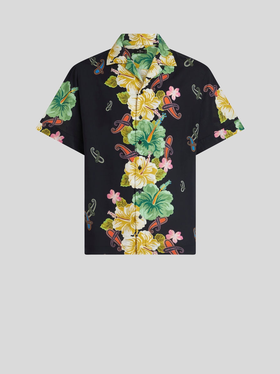 Viscose bowling shirt with decorative, placed floral Paisley print. This model is embellished with an embroidered Pegaso symbol and ETRO logo on the back. PRODUCT DETAILS • 100% viscose