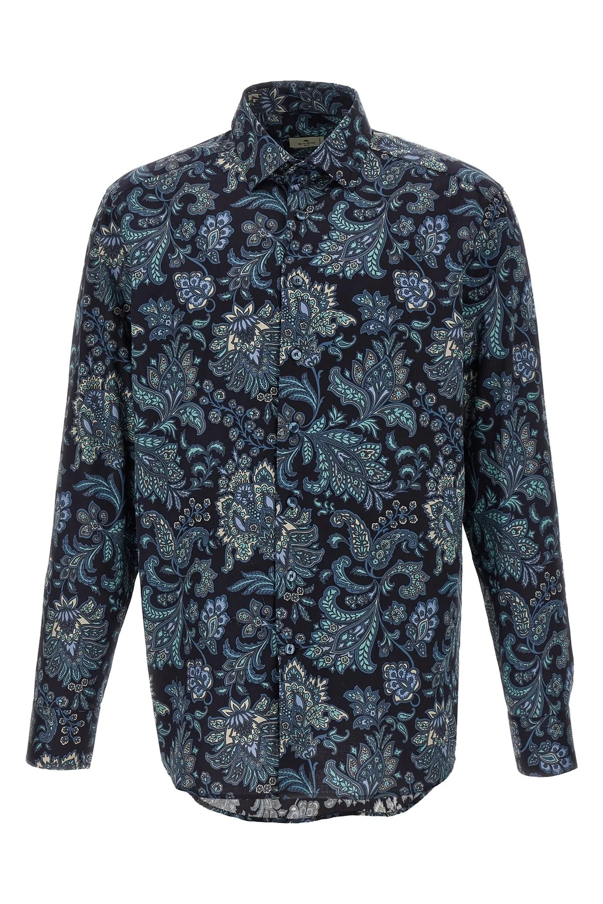 cod. MRIB000199SA5L8X0883 All-over floral Paisley print cotton shirt, front button closure, long cuffed sleeves. Color: Blue Size & Fit: Roma fit - COLLAR size Composition: 100% cotton Made in: Italy