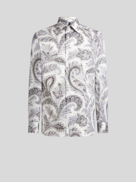 Pure cotton shirt embellished with a floral Paisley motif all over. • Roma regular fit • Pointed collar • Long sleeves • Double-buttoned working cuffs • Made in Italy • The model is 6' 1½" (187 cm) tall and wears a size 39 PRODUCT DETAILS • 100% cotton