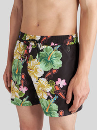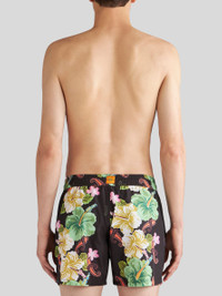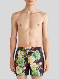 Technical canvas swim shorts with decorative, placed floral Paisley print. This model is embellished with a patch bearing the Pegaso symbol and an embroidered ETRO logo on the back. PRODUCT DETAILS • Exterior: 100% polyester • Lining: 90% polyester, 10% elastane • Regular fit • Side slip pockets • Drawstring closure • Made in Italy • The model is 188 cm tall and wears a size M