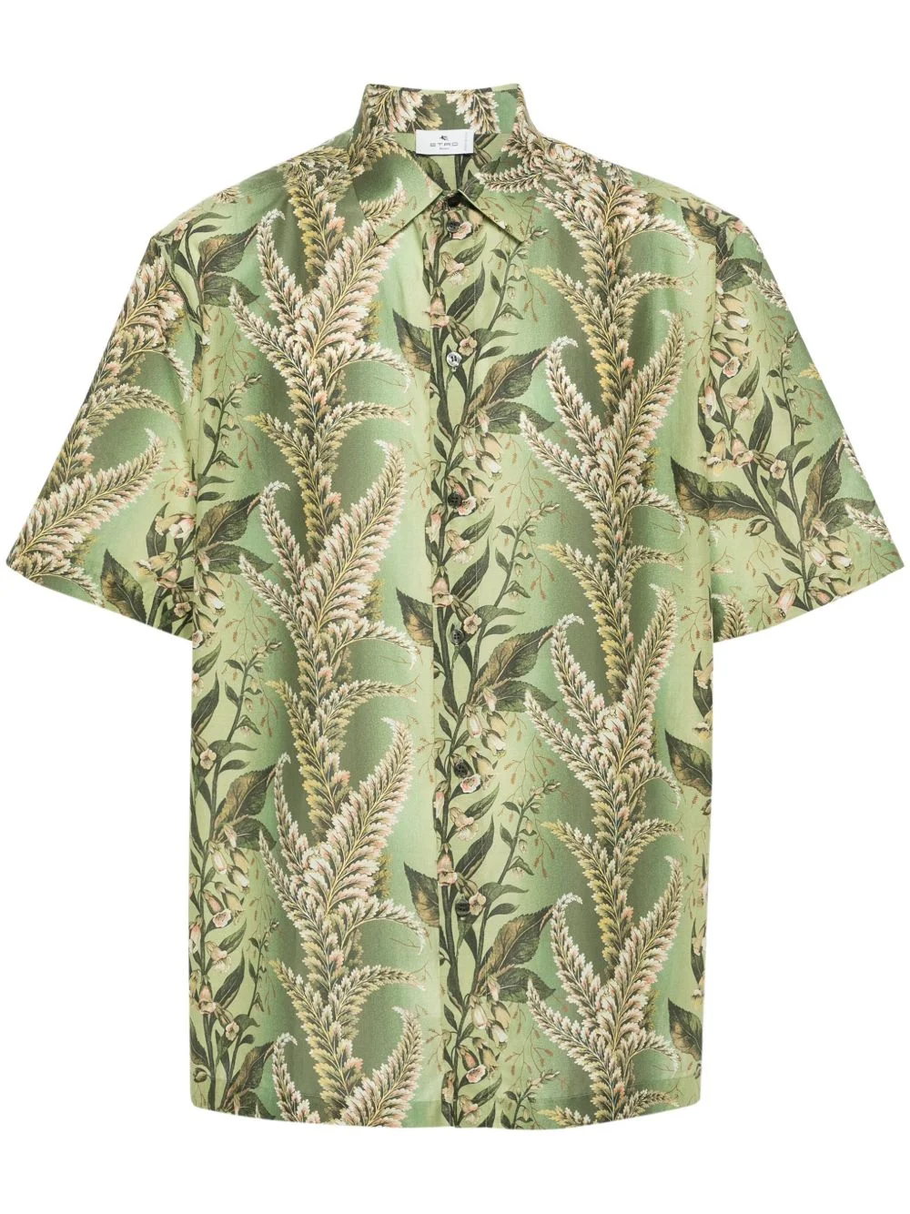 floral-print cotton shirt Highlights - Fern green - Cotton - All-over floral print - Spread collar - Front button fastening - Short sleeves - Straight hem Made in Italy Composition Cotton 100% SIZE & FIT Model measurements Height 6 ft 2 in(1.87 m) Bust/Chest 37.79 in(96 cm) Hips 37.79 in(96 cm) Waist 30.31 in(77 cm) FittingInformation Designed for a relaxed fit, this piece allows for comfort and movement when worn Made from a midweight non-stretch fabric This piece fits true to size – take your usual size Washing instructions Machine Wash