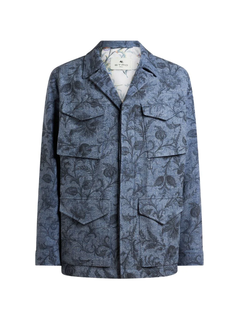 floral-print jacket Highlights - Blue - Floral motif - Front pockets - Long sleeves - Button fastening Made in Italy Composition Cotton 85%, Wool 15% Washing instructions Read Manufacturer Guidelines