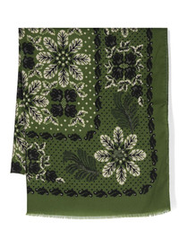 floral-print wool scarf Highlights - Green/light beige/black - Wool - All-over floral print - Rectangle shape - Frayed edge - Wraparound style Made in Italy Composition Wool 100% SIZE & FIT Measurement LENGTH 74.8 in(190 cm) WIDTH 33.46 in(85 cm) Washing instructions Dry Clean Only