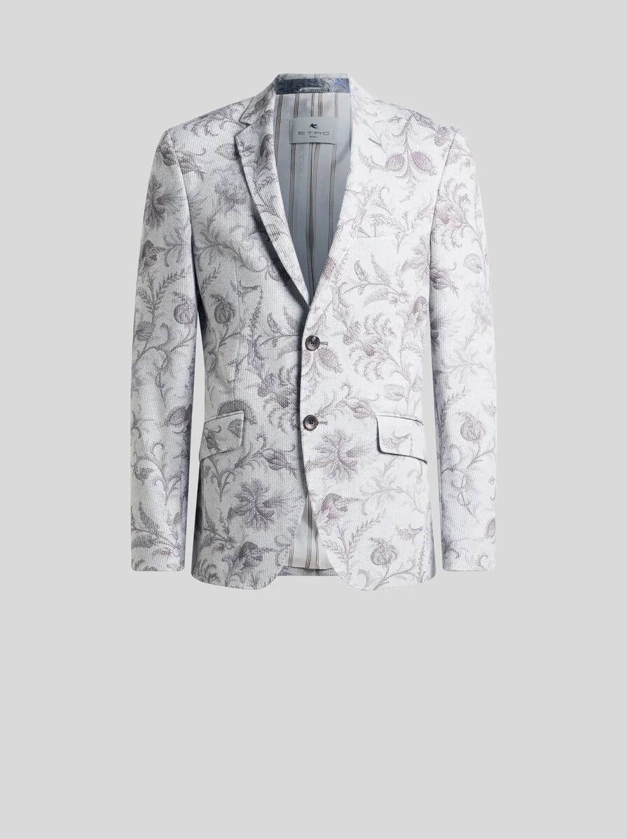 SINGLE-BREASTED COTTON-BLEND JACKET WITH FLORAL MOTIF