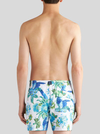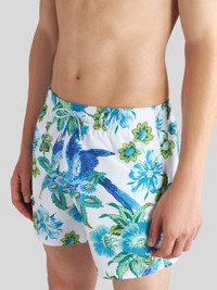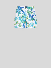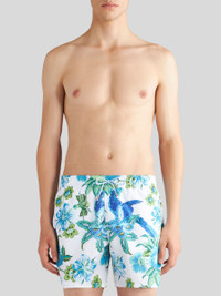Technical canvas swim shorts with an all-over floral print. This model is embellished with a patch bearing the Pegaso symbol and an embroidered ETRO logo on the back. PRODUCT DETAILS • Exterior: 100% polyester • Lining: 90% polyester, 10% elastane • Regular fit • Side slip pockets • Flap pocket on the back • Drawstring closure • Made in Italy • The model is 188 cm tall and wears a size M