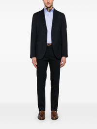 gabardine trousers Highlights - Prussian blue - Concealed fly and button fastening - Two side slash pockets - Two rear button-fastening jetted pockets - Belt loops Made in Italy Composition Cotton 98%, Elastane 2% SIZE & FIT Model measurements Height 6 ft 2 in(1.87 m) Bust/Chest 37.79 in(96 cm) Hips 37.79 in(96 cm) Waist 30.31 in(77 cm) FittingInformation Designed for a slim fit, offering a comfortable fit that sits just away from the leg Made from a midweight stretch fabric, this piece offers elasticity and flexibility when worn