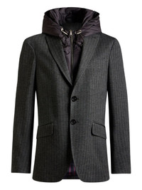 herringbone detachable-hood blazer Highlights - Dark-grey - Herringbone pattern - Detachable hood - Front button fastening - Flap pockets - Padded hood Made in Italy Composition Fabric 100% Washing instructions Read Manufacturer Guidelines