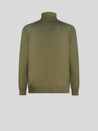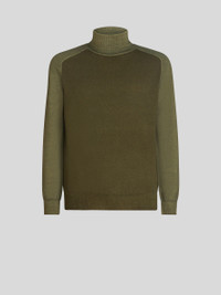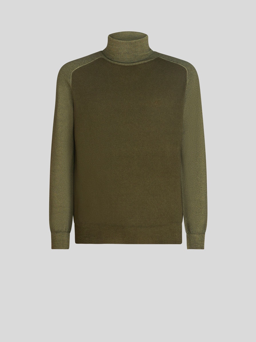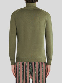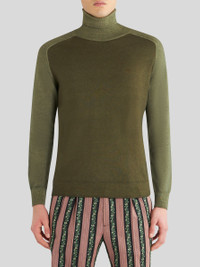 High neck virgin wool jumper decorated with ETRO logo and ton-sur-ton embroidered Pegaso on chest. PRODUCT DETAILS • 100% virgin wool • Regular fit • High neck • Ribbed borders • Made in Italy • The model is 188 cm / 6 ft 2 inches tall and wears size M
