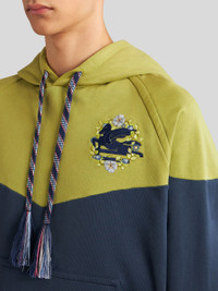 Cotton hooded sweatshirt embellished with floral motif and embroidered Pegaso symbol on the chest. PRODUCT DETAILS • 100% cotton • Easy fit • Drawstring hood • Pouch pocket • Made in Italy • The model is 188 cm tall and wears a size M