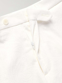 Paisleys have been passed down the silk road for thousands of years, woven into scarves, shawls and tapestries alike. Inspired by the styles of Asia and the Middle East, Etro founder Gimmo made them a mainstay of his collections back in the late '60s. A fine example of its fan-favourite pattern, these shorts are made from denim jacquard-woven with motifs of different shapes and sizes. Size & Fit - Fits true to size. Take your normal size - Relaxed-straight leg, mid-rise style - Mid-weight, non-stretchy fabric - Model is shown wearing an IT 48 - Model measures: waist size 32, height 6'0"/ 183cm Details & Care - White denim - Button and zip fastening - 98% cotton, 2% elastane - Machine wash