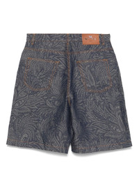 jacquard denim bermuda shorts Highlights - Ocean blue - Concealed fly and button fastening - Belt loops - Classic five pockets - Logo patch to the rear Made in Italy Composition Lining: Polyester 65%, Cotton 35% Outer: Cotton 57%, Linen/Flax 43%