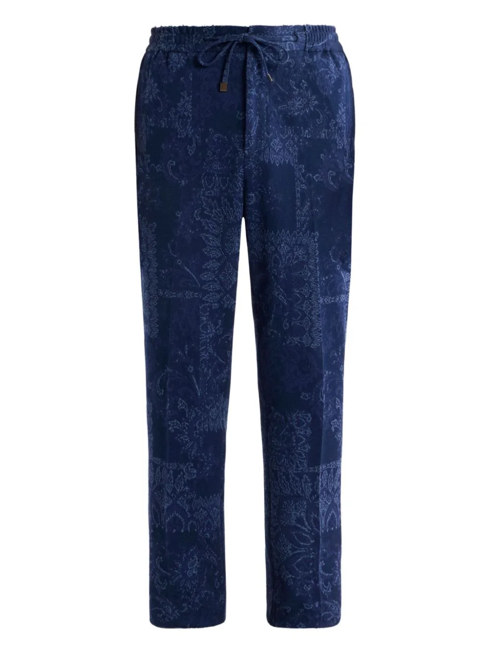 jacquard floral trousers Highlights - Blue - Floral print - Jacquard - Drawstring waist - Back pockets Made in Italy Composition Cotton 100% Washing instructions Read Manufacturer Guidelines