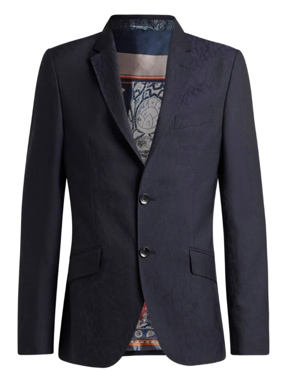 jacquard single-breasted blazer Highlights - Dark blue - Jacquard - Flap pockets - Button fastening - Long sleeves Made in Italy Composition Wool 100% Washing instructions Read Manufacturer Guidelines