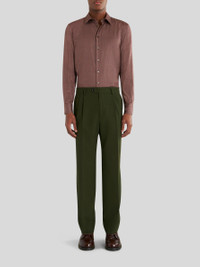 Straight cut mixed virgin wool jacquard trousers. PRODUCT DETAILS • 99% virgin wool, 1% elastane • Lining: 60% acetate, 40% viscose • Regular fit • Piped side pockets • Piped rear pockets • Button and zip with flap fastening • Unfinished leg bottom 24 cm / 9.44 inches • Made in Italy • The model is 188 cm / 74,01 inches tall and wears size 48
