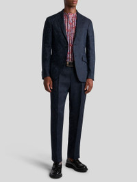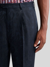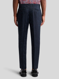 Tailored linen-blend trousers with Paisley jacquard motif all over. This model is enhanced by two front pleats and pressed creases. PRODUCT DETAILS • 52% linen, 48% viscose