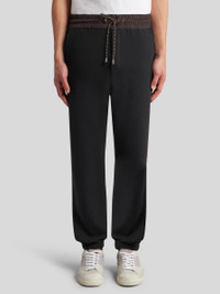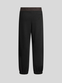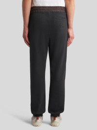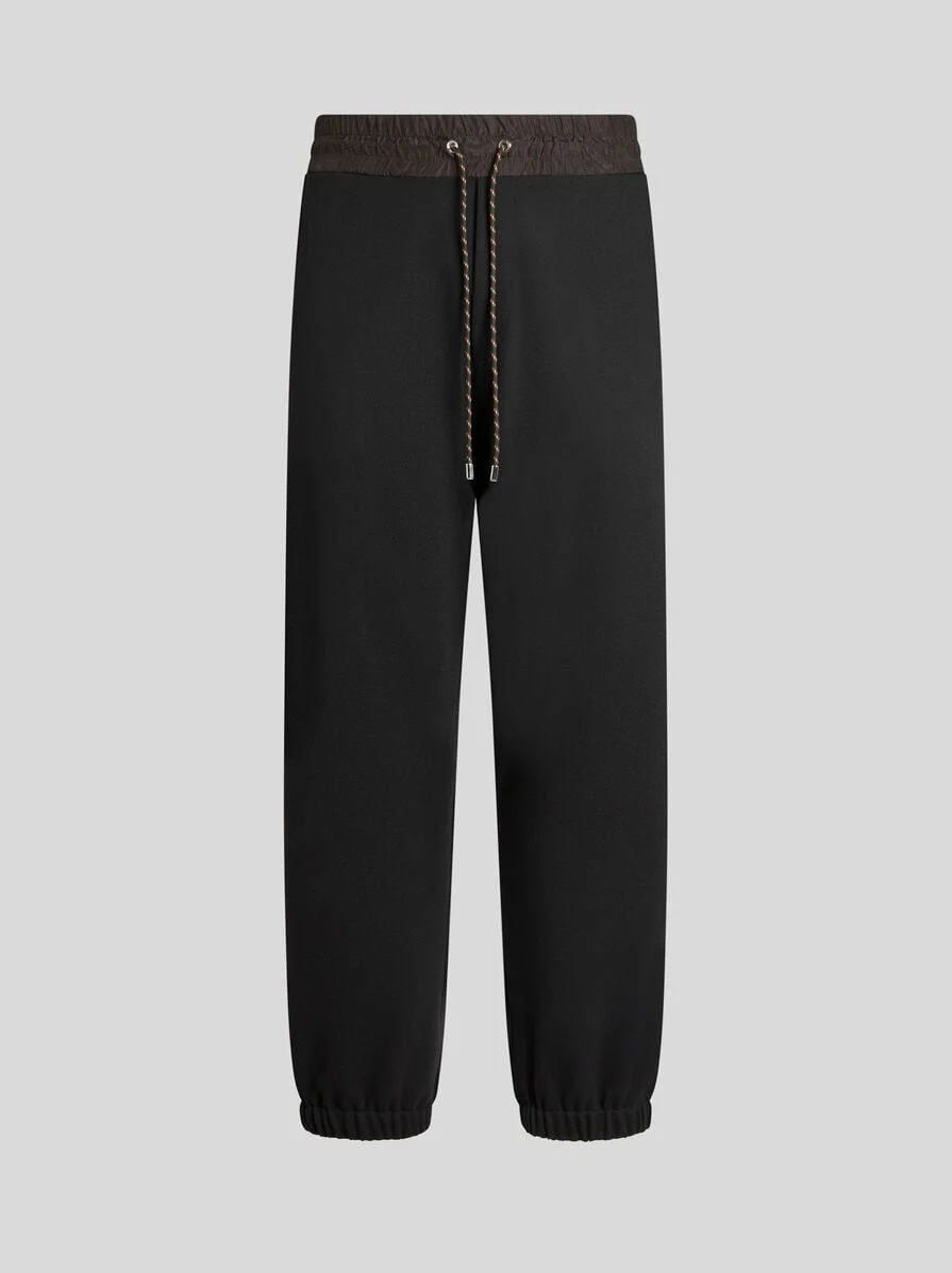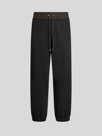 Stretch cotton-blend jogging trousers with Paisley print-adorned nylon detail. This model is embellished with an embroidered Pegaso symbol and ETRO logo on the back. • Regular fit • Side slip pockets • Welt back pocket • Waist drawstring • Made in Italy • The model is 6’1”(186 cm) tall and wears a size M PRODUCT DETAILS • 65% polyester, 31% cotton, 4% elastane • Belt: 100% polyester