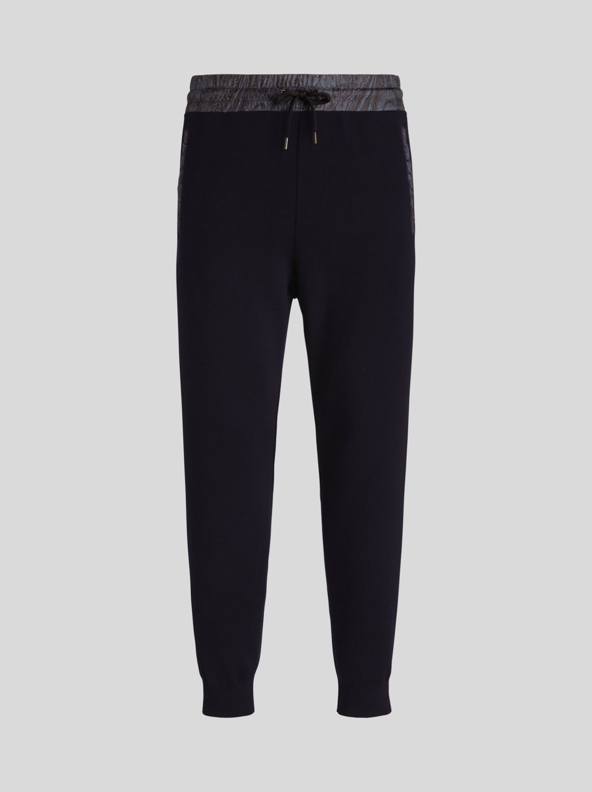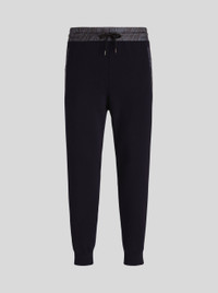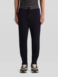 Jersey jogging trousers with all-over floral Paisley details. PRODUCT DETAILS • 48% wool, 48% acrylic, 3% polyester, 1% elastane • Patterned fabric: 100% polyester • Regular fit • Side pockets • Piped rear pocket • Drawstring fastening • ETRO logo with Pegaso on rear • Made in Italy • The model is 187 cm tall and wears size 48