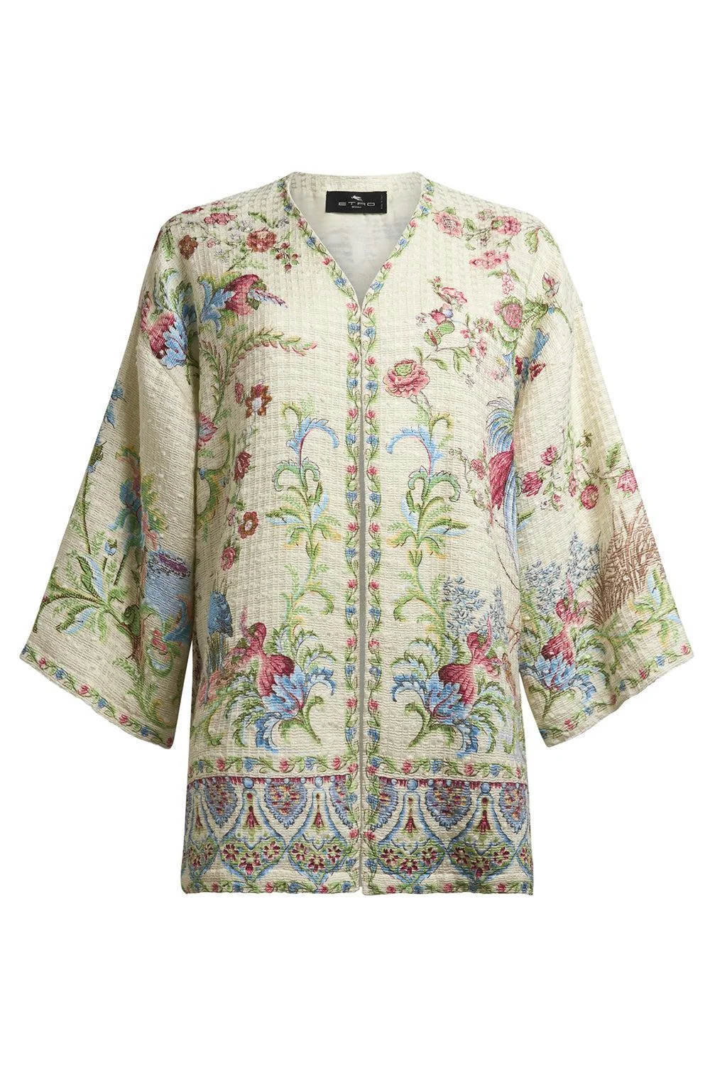 DETAILS AND INSIGHT Etro kesa jacket in white print. 59% Cotone 38% Viscosa 3% Poliammide Professionally Cleaned Made In Italy Pre-Order Ships by April 7 Style WRCA0024-AKH04-X0802