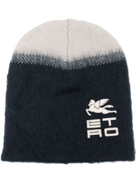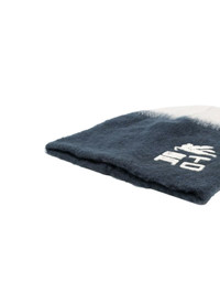 Description knitted beanie hat Highlights ['* blue', '* colour-block design', '* knitted construction and logo print to the front.'] Made in Italy Composition Synthetic->Acrylic 42%, Polyamide 20%, Polyester 100%, Virgin Wool 19%, Mohair 19%