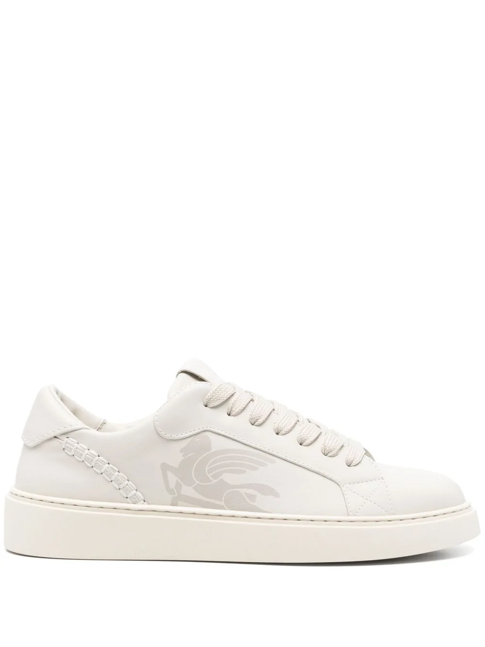 leather low-top sneakers Highlights - Beige - Front lace-up fastening - Logo-embellished side panels - Round toe - Branded insole Made in Italy Composition Outer: Calf Leather 100% Sole: Rubber 100% Lining: Calf Leather 100%