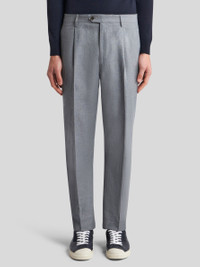 Regular-fit linen and wool trousers with pleats and pressed creases. PRODUCT DETAILS • 57% linen, 43% wool