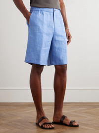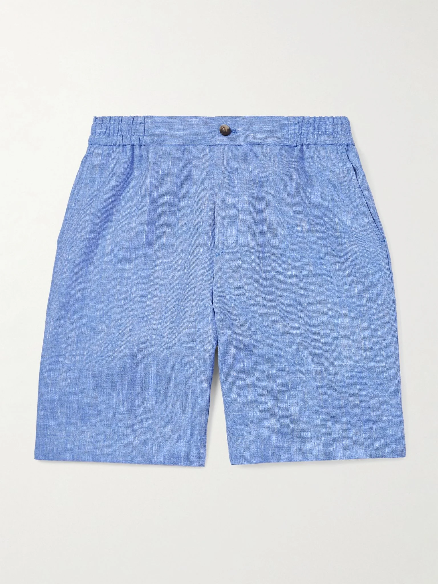 Straight-Leg Linen and Wool-Blend Shorts Blue