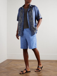 Etro's shorts have been made in Italy from a blend of linen and wool, so they're equal parts soft and breathable. They're cut in a neat, straight-leg fit and have a partially elasticated waistband for comfort. Size & Fit - Model wears a size larger to achieve a looser fit - Relaxed-straight leg, low-crotch style - Partially elasticated at the waist - Lightweight, non-stretchy fabric - Model is shown wearing a M - Model measures: waist size 30, height 6'1"/ 185cm Details & Care - Blue melange linen and wool-blend - Button and zip fastening - 60% linen, 40% wool - Dry clean