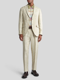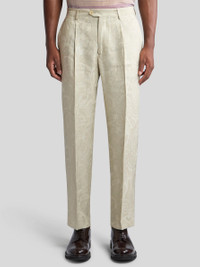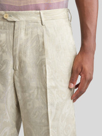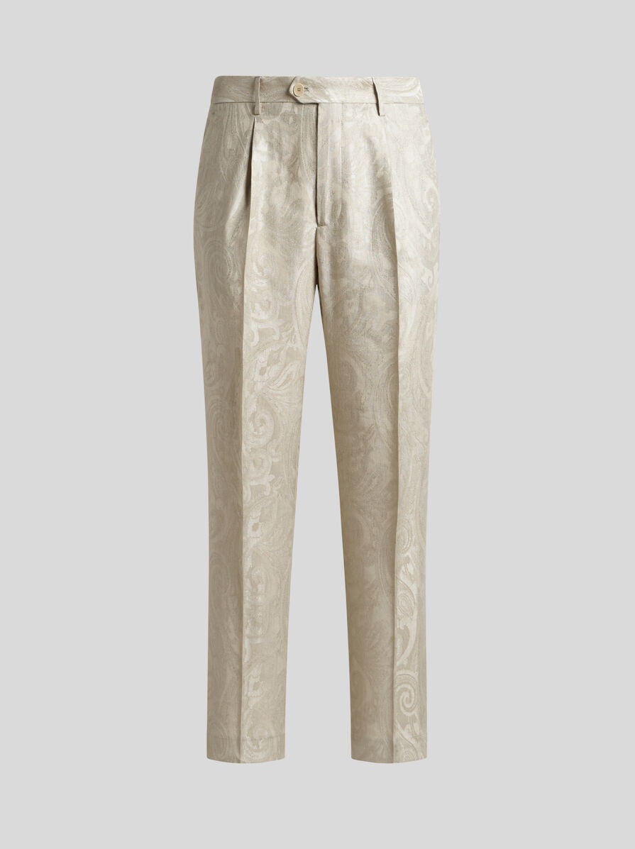 Tailored linen-blend trousers with Paisley jacquard motif all over. This model is enhanced by two front pleats and pressed creases. PRODUCT DETAILS • 52% linen, 48% viscose