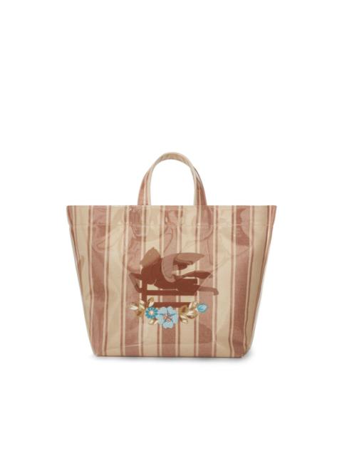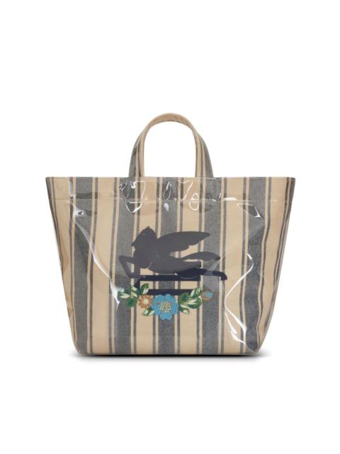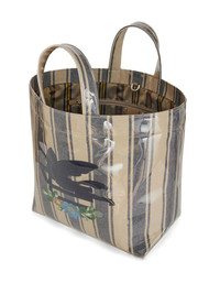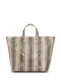 logo-applique tote bag Highlights - Beige/light grey - Recycled polyurethane/calf leather/cotton blend - Patent finish - Stripe print - Applique logo - Two top handles Made in Italy Composition Outer: Recycled Polyethylene 100% Body: Cotton 88%, Polyester 12% Trims: Calf Leather 100% Lining: Polyester 100% SIZE & FIT Measurement DEPTH 8.66 in(22 cm) HEIGHT 14.96 in(38 cm) WIDTH 14.17 in(36 cm)