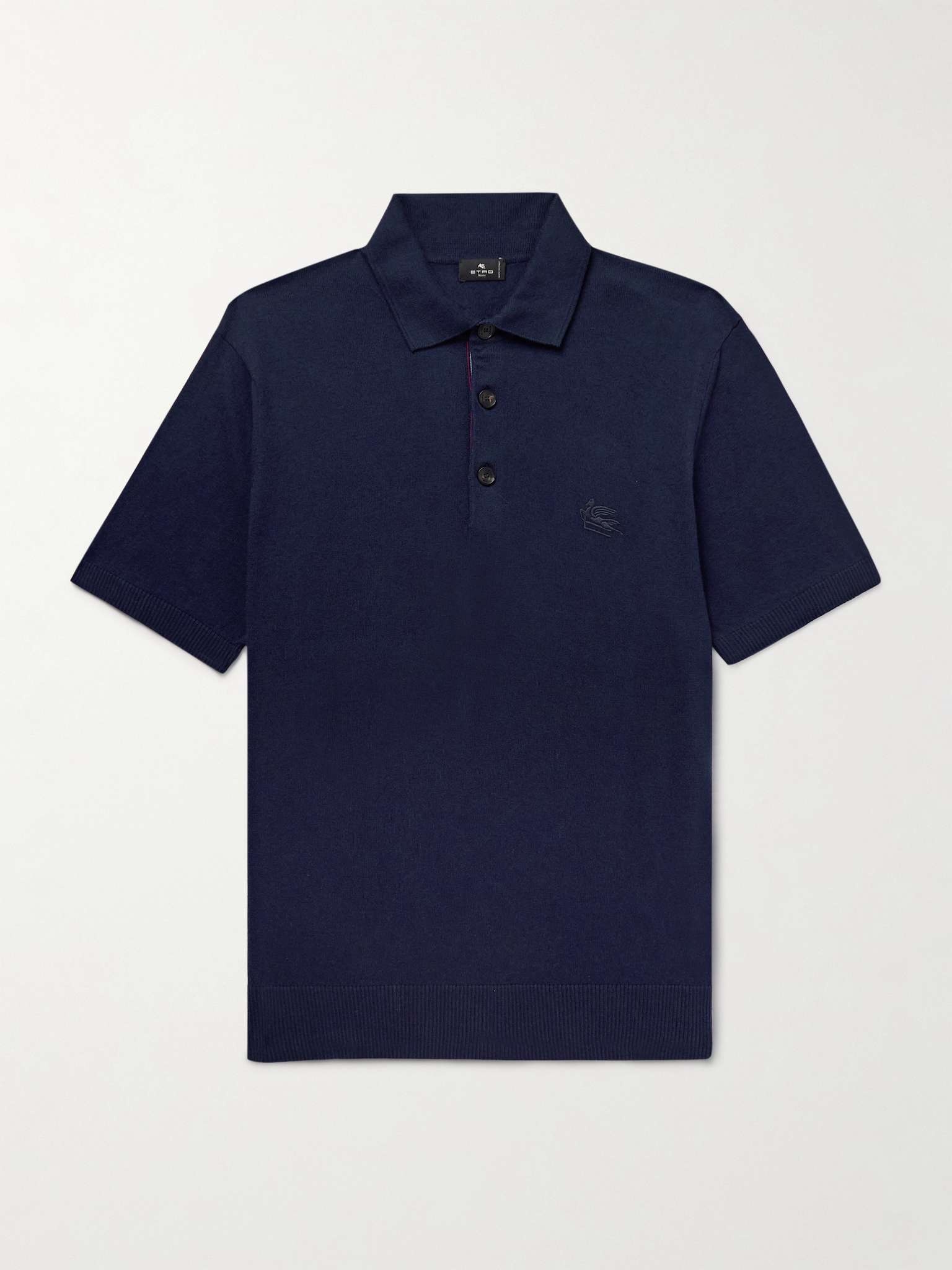 Etro's polo shirt has been made in Italy from a soft, lightweight blend of cotton and cashmere. It's embroidered with the label's 'Pegaso' emblem at the chest and has ribbed trims to give the relaxed fit some structure. Leave the top button undone to showcase the striped placket. Size & Fit - Model wears a size larger to achieve a looser fit - Lightweight knit - Model is shown wearing a M - Model measures: chest 36"/ 92cm, height 6'1"/ 185cm Details & Care - Navy cotton and cashmere-blend - Button fastenings - 85% cotton, 15% cashmere - Machine wash