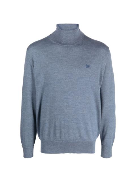 logo-embroidered roll-neck jumper Highlights - Black - Virgin wool - Embroidered logo at the chest - Fine knit - Roll neck - Long sleeves - Straight hem Made in Italy Composition Virgin Wool 100% SIZE & FIT Model measurements Height 6 ft 2 in(1.88 m) Bust/Chest 37.79 in(96 cm) Hips 35.82 in(91 cm) Waist 29.92 in(76 cm) Measurement CHEST 44.09 in(112 cm) SLEEVE LENGTH 34.25 in(87 cm) Shoulder Width 18.11 in(46 cm) FittingInformation Designed for a regular fit, offering a comfortable loose fit throughout the body Made with a midweight knit, this piece offers some stretch This piece fits true to size – take your usual size Washing instructions Hand Wash