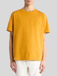 Plain-coloured pure cotton crew-neck T-shirt. The tonal embroidered ETRO monogram and iconic Pegaso symbol stand out on the chest. • Regular fit • Made in Italy • The model is 6' 1½" (187 cm) tall and wears a size M PRODUCT DETAILS • 100% cotton