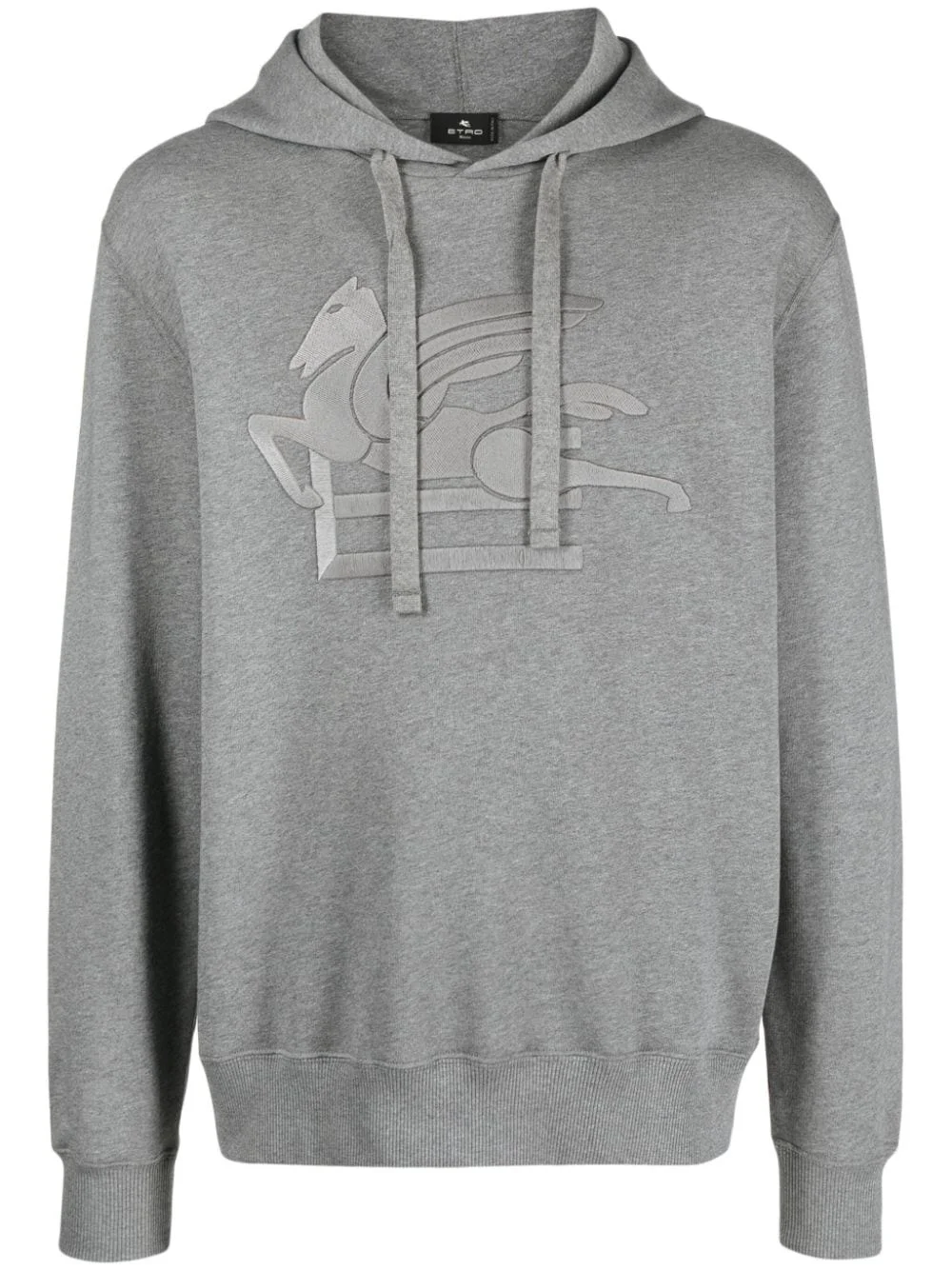 logo-stamp cotton hoodie Highlights - Heather grey - Cotton - Jersey texture - Tonal design - Signature pegaso motif - Logo stamp to the front - Drawstring hood - Drop shoulder - Long sleeves - Ribbed cuffs and hem Made in Italy Composition Cotton 100%, Polyester 100% SIZE & FIT Model measurements Height 6 ft 1 in(1.86 m) Bust/Chest 37.79 in(96 cm) Hips 38.58 in(98 cm) Waist 33.85 in(86 cm) Washing instructions Machine Wash
