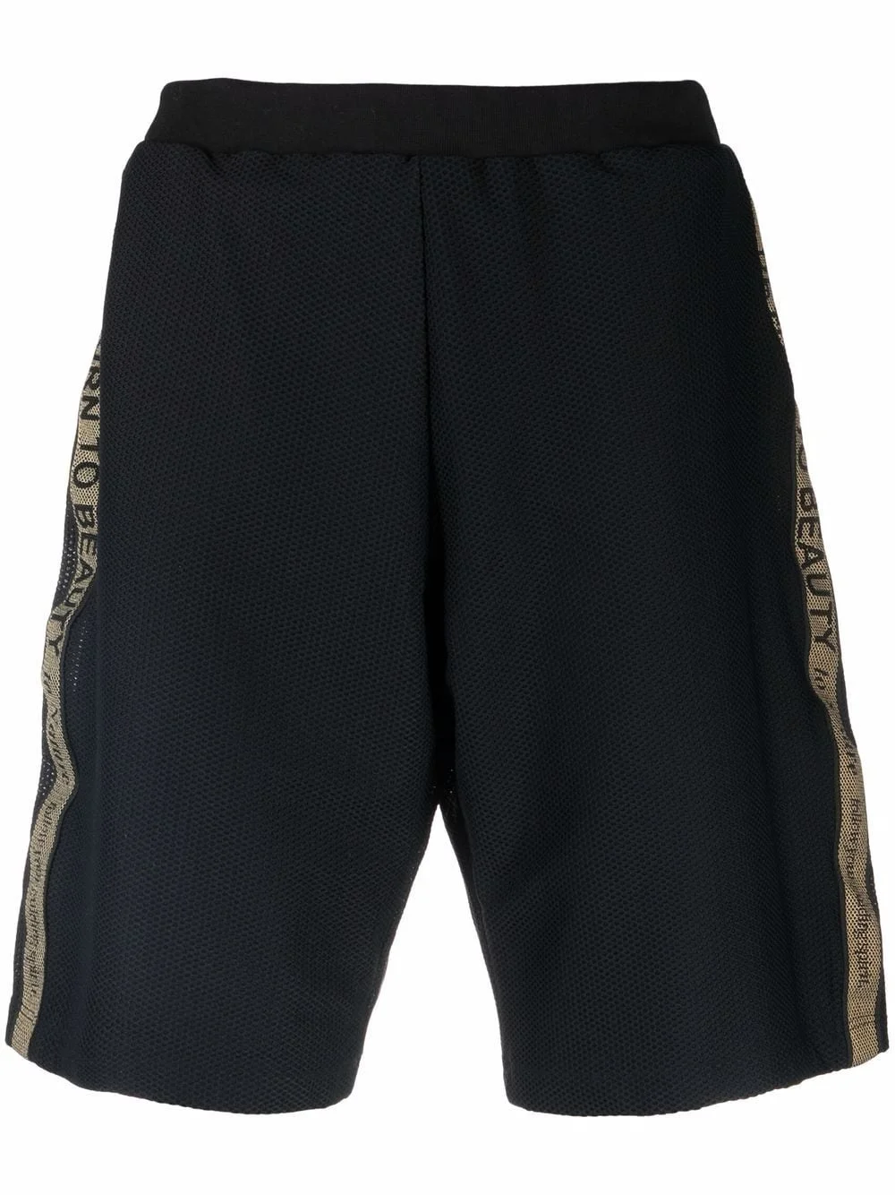 logo-tape casual shorts black logo-tape detailing elasticated waistband straight leg Made in Italy Composition Outer: Polyester 100%, Polyamide 80%, Spandex/Elastane 20% Lining: Polyamide 73%, Spandex/Elastane 27% SIZE & FIT Model measurements Height 6 ft 2 in(1.89 m) Bust/Chest 37.79 in(96 cm) Hips 37 in(94 cm) Waist 29.92 in(76 cm) FittingInformation This piece fits true to size. We recommend you get your regular size Designed for a slim fit at the waist and loose over the leg Made with a mid-weight fabric Washing instructions Hand Wash