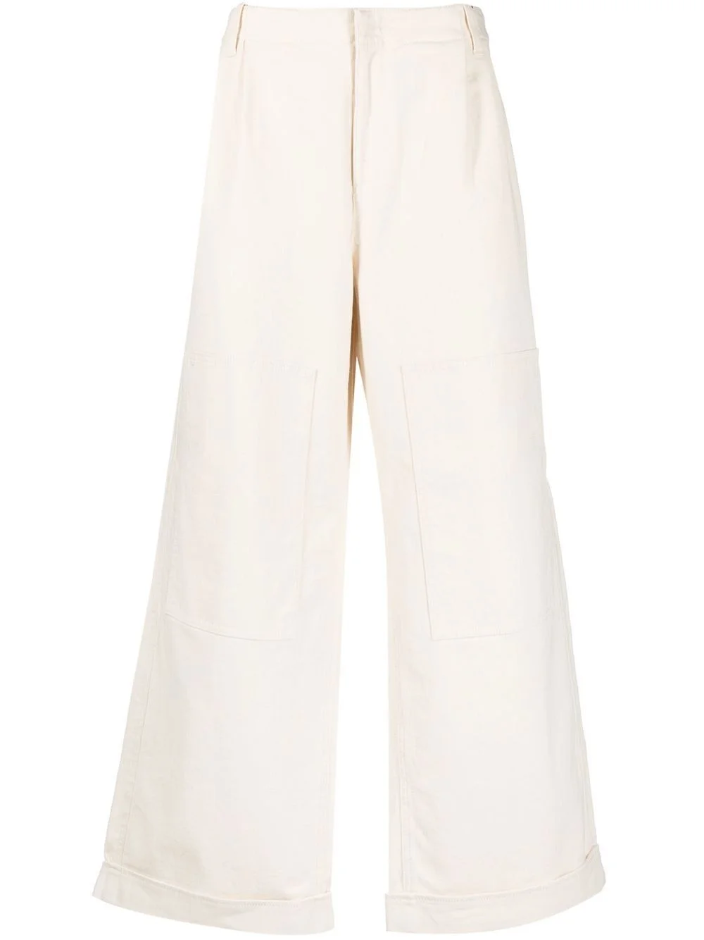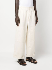 low-rise wide-leg trousers white stretch-cotton pleat detailing wide leg low-rise concealed front fastening belt loops multiple patch pockets slip pocket to the rear turn-up hem Made in Italy Composition Cotton 98%, Elastane 2% SIZE & FIT Model measurements Height 6 ft 2 in(1.87 m) Bust/Chest 36.41 in(92.5 cm) Hips 37 in(94 cm) Waist 29.52 in(75 cm) Measurement FRONT RISE 11.81 in(30 cm) INSIDE LEG 29.13 in(74 cm) WAIST 36.22 in(92 cm) FittingInformation This piece fits true to size. We recommend you get your regular size Designed for a slim fit at the waist and loose over the leg Made with a mid-weight stretch fabric Washing instructions Machine Wash