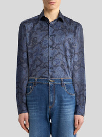Pure cotton shirt with decorative Paisley motif with maxi flowers – some of which feature the brand lettering – all over. • Roma fit • Straight-point collar • Branded-button closure • Double-buttoned working cuffs • Made in Italy • The model is 6' 1½" (187 cm) tall and wears a size 39 PRODUCT DETAILS • 100% cotton