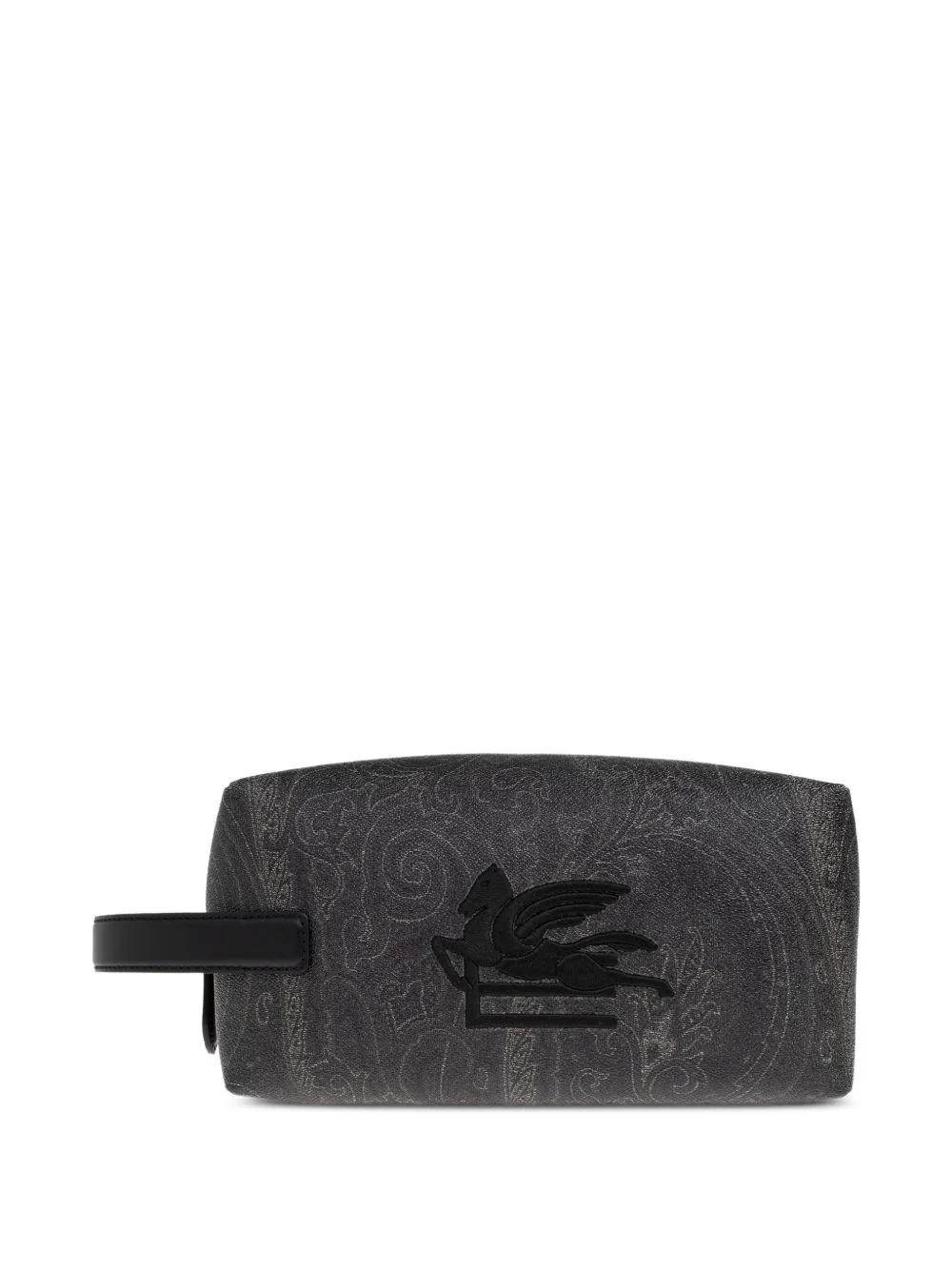 medium Arnica Pegasus-logo paisley wash bag Highlights - Black - Paisley print - Logo detail - Top handle - Zip fastening Made in Italy Composition Outer: Cotton 100%, PVC 100%, Calf Leather 100% SIZE & FIT Measurement DEPTH 4.72 in(12 cm) HEIGHT 4.72 in(12 cm) WIDTH 9.84 in(25 cm)
