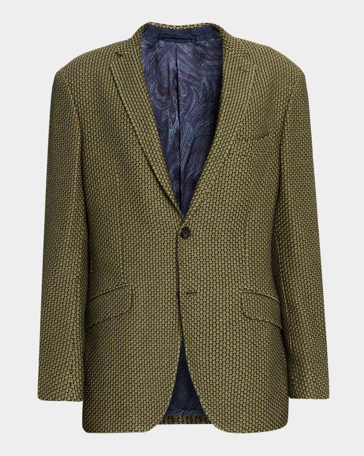 - Etro blazer in textured cotton weave - Notched lapels - Two-button closure - Chest welt pocket - Side flap pockets - Four-button cuffs - Double-vented back - Lining: Polyester/viscose - Made in Italy - Model is 6'1"/185cm.
