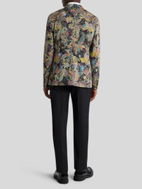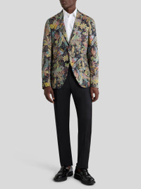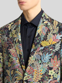 Stretch wool gabardine jacket with multicoloured, jungle-inspired all-over foliage print and contrasting undercollar. • Roma regular fit • Classic lapels • Single-breasted two-button closure • Front pockets with flap • Made in Italy • The model is 6' 1½" (187 cm) tall and wears a size 48. PRODUCT DETAILS • 90% wool, 8% polyamide, 2% elastane • Bodice lining: 100% viscose • Sleeve lining: 52% viscose, 48% acetate