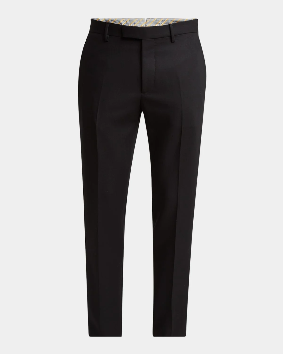 - Etro evening pants in a wool blend for a sleek, sophisticated finish - Regular rise - Flat front - Side slip pockets - Back welt pockets - Classic fit through slim legs - Full length - Extended button-zip fly; belt loops - Wool/silk/polyester - Lining: Acetate/viscose - Professional cleaning recommended - Made in Italy