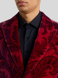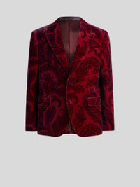 Blazer in pure cotton velvet with all-over foliage print and covered buttons. The contrasting undercollar completes the garment. • Regular fit • Peak lapels • Single-breasted two-button closure • Front pockets with flap • Made in Italy • The model is 6' 1½" (187 cm) tall and wears a size 48 PRODUCT DETAILS • 100% cotton • Lining: 100% viscose