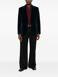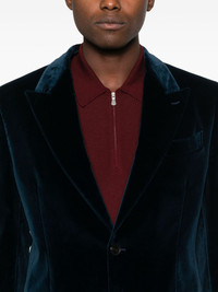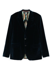 single-breasted blazer Highlights - Blue - Velvet - Notched lapels - Front button fastening - Side flap pockets - Long sleeves Made in Italy Composition Outer: Cotton 98%, Elastane 12% Lining: Viscose 100% Silk 78%, Elastane 2% SIZE & FIT Model measurements Height 6 ft 2 in(1.88 m) Bust/Chest 36.61 in(93 cm) Hips 35.82 in(91 cm) Waist 27.95 in(71 cm) Washing instructions Read Manufacturer Guidelines