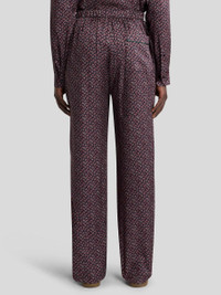 Relaxed-fit trousers in fluid-feeling fabric with distinctive, all-over, tie-inspired micro Paisley motif. This item features a partially elasticated waist and is complete with a rear patch pocket with contrasting trim. • Easy fit • Rear patch pocket • Concealed zip closure • Waistband elasticated at the back • Made in Italy • The model is 6' 1" (186 cm) tall and wears a size M PRODUCT DETAILS • Main material: 100% viscose • Trim: 100% polyester