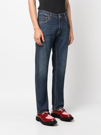 mid-rise straight-leg jeans Highlights - Indigo blue - Stretch-cotton - Denim - Embroidered logo to the rear - Contrast stitching - Straight leg - Mid-rise - Concealed fly and button fastening - Belt loops - Classic five pockets Made in Italy Composition Cotton 98%, Spandex/Elastane 2% SIZE & FIT Model measurements Height 6 ft 2 in(1.87 m) Bust/Chest 36.41 in(92.5 cm) Hips 35.43 in(90 cm) Waist 29.52 in(75 cm) FittingInformation Designed for a slim fit, these jeans offer a comfortable fit that sits just away from the leg Constructed from stretch denim, this piece offers a stretch fit with durability This piece fits true to size – take your usual size
