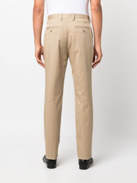 mid-rise stretch-cotton chinos Highlights - Beige - Stretch-cotton - Pressed crease - Mid-rise - Belt loops - Front button and zip fastening - Straight leg - Two side inset pockets - Two rear button-fastening jetted pockets Made in Italy Composition Cotton 98%, Spandex/Elastane 2% SIZE & FIT Model measurements Height 6 ft 1 in(1.86 m) Bust/Chest 37.4 in(95 cm) Hips 34.64 in(88 cm) Waist 29.13 in(74 cm) Measurement FRONT RISE 10.23 in(26 cm) INSIDE LEG 33.46 in(85 cm) FittingInformation Designed for a slim tapered leg, offering a close fit that sits just away from the leg with a closer fit towards the ankle The unfinished hems allow for the length to be altered Made from a midweight stretch fabric, this piece offers elasticity and flexibility when worn This piece fits true to size – take your usual size Washing instructions Machine Wash