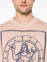 motif-embroidered cotton jumper Highlights - Pink/blue - Cotton - Knitted construction - Ribbed trim - Embroidered motif to the front - Crew neck - Drop shoulder - Long sleeves - Ribbed cuffs and hem - Straight hem Made in Italy Composition Cotton 100%, Polyester 100% SIZE & FIT Model measurements Height 6 ft 2 in(1.87 m) Bust/Chest 37.79 in(96 cm) Hips 37.79 in(96 cm) Waist 30.31 in(77 cm) FittingInformation Designed for a relaxed fit, this piece allows for comfort and movement when worn Made with a midweight knit, this piece offers some stretch This piece fits true to size – take your usual size Washing instructions Machine Wash