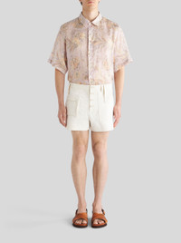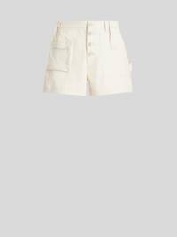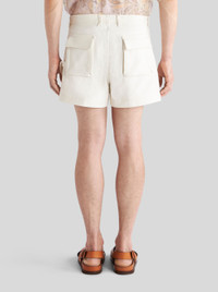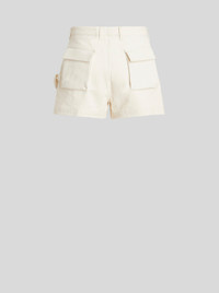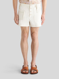 High-waisted mixed cotton shorts from the Men's Spring-Summer 2023 Fashion Show collection embellished by front and rear pockets. PRODUCT DETAILS • 98% cotton, 2% elastane • Pocket: 100% cotton • Regular fit • High waist • Front patch pockets • Rear pockets with flap • Button and zip fastening with flap • Made in Italy • The model is 188 cm tall and wears size 48