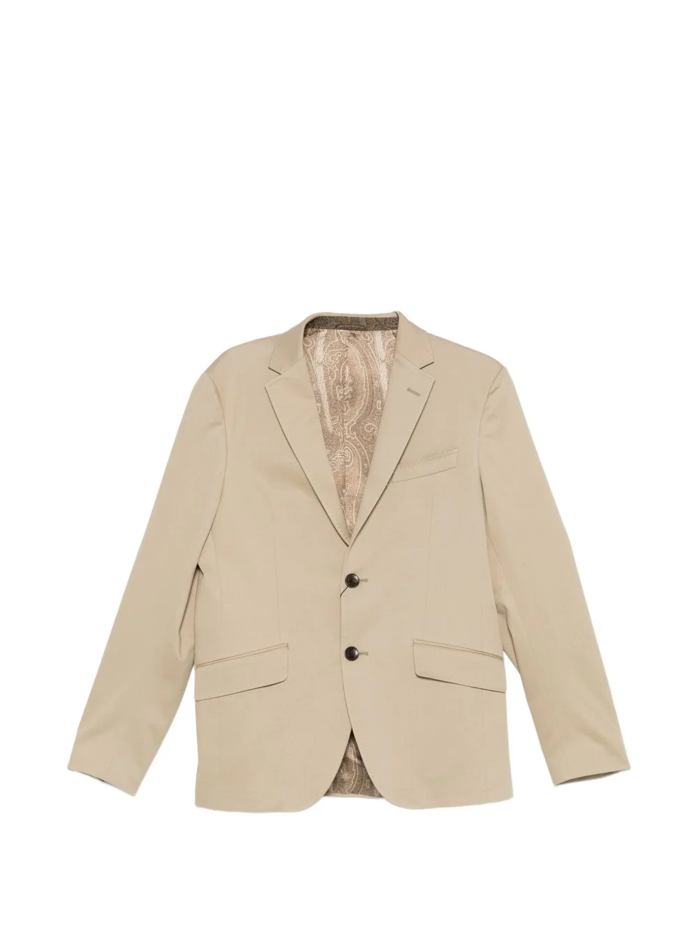 notched-lapel blazer Highlights - Beige - Paisley-print lining - Button fastening - Notched lapels - Front flap pockets Made in Italy Composition Outer: Cotton 97%, Elastane 3% Lining: Viscose 100% Washing instructions Dry Clean Only