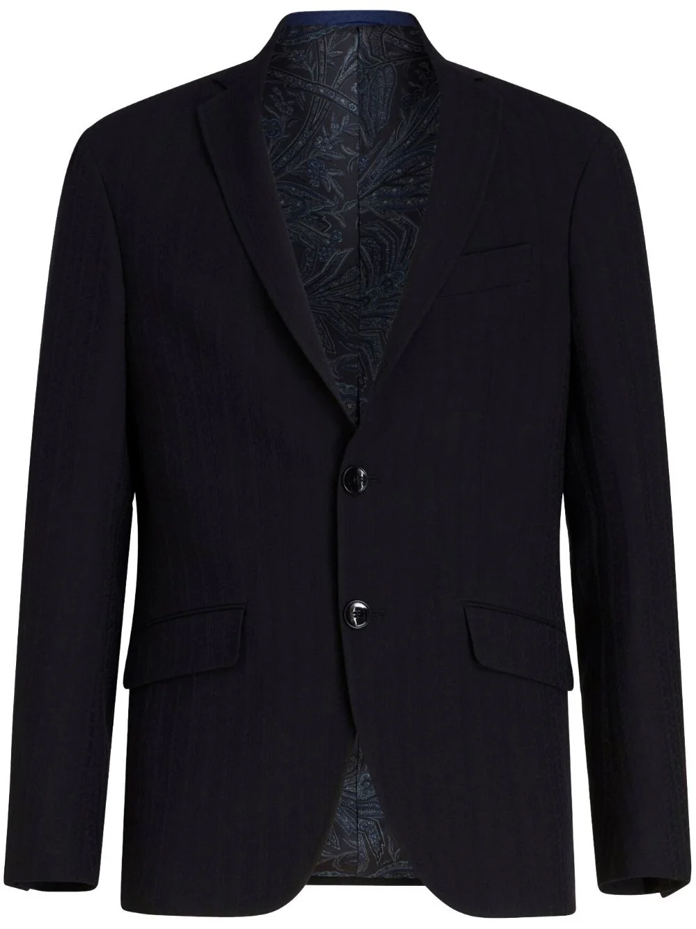 notched-lapels virgin wool-blend blazer Highlights - Jet black - Virgin wool blend - Notched lapels - Front button fastening - Long sleeves - Buttoned-cuff sleeves - Chest welt pocket - Two side flap pockets - Straight hem Made in Italy Composition Outer: Virgin Wool 99%, Spandex/Elastane 1% Lining: Viscose 50%, Cupro 50%