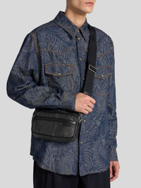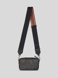 Camera case in iconic Paisley jacquard fabric with shoulder strap and Etro logo-branded leather details. This model has a practical, clasp-detachable shoulder strap with a striped pattern on the inner side. • Dimensions (Width, Height, Depth): 7.9 x 4.5 x 2.2 inches (20 x 11.5 x 5.5 cm) • Detachable adjustable shoulder strap • Zip closure • Front pocket • Internal zip pocket • Golden-finish metal details • Made in Italy PRODUCT DETAILS • Exterior: Paisley jacquard cotton fabric coated with matt texture and lined with canvas • Coating: 100% PVC • Trims: calfskin • Ribbon: 95% polyester, 5% polyamide • Lining: 100% polyester and details in calfskin